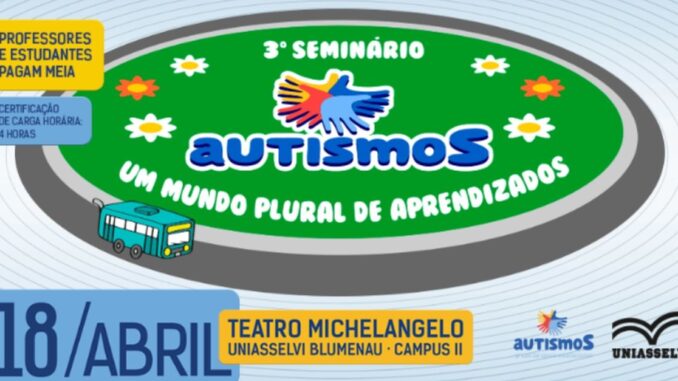 No dia 18 de abril, Blumenau recebe mais uma edição do Seminário de Sensibilização do Grupo AutismoS. O evento, que já contou com grande público em 2018 e 2019, chega à sua terceira edição com o tema “AutismoS: um mundo plural de aprendizados”.