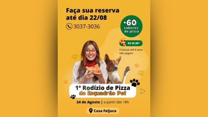 Na quarta-feira, 24 de agosto, será realizado o 1° Rodízio de Pizza do Esquadrão Pet, um grupo formado por protetoras independentes que já ajudou centenas de cães e gatos em Blumenau. O evento será realizado na Casa Feijuca, que fica na Rua Antônio da Veiga e parte do valor do rodízio será destinado para ajudar a pagar os custos dos resgates na clínica veterinária.