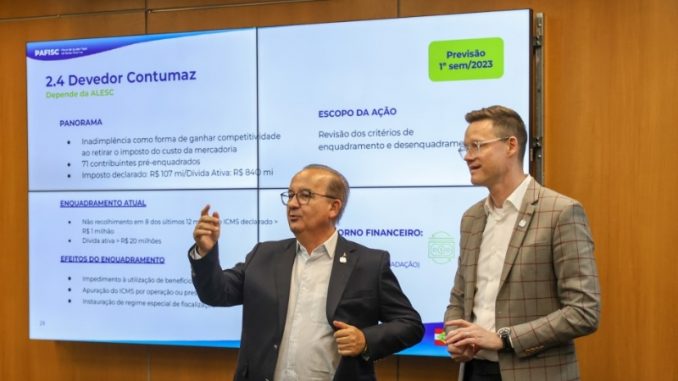 O secretário Cleverson Siewert explica que o pacote leva em consideração o cenário macroeconômico desafiador de 2023 e todas as ações voltadas às receitas estão detalhadas em estudo produzido pelos auditores fiscais. “O plano é buscar receitas, incentivar novos negócios, desburocratizar a máquina pública e ajudar quem investe e produz em Santa Catarina”, destaca.