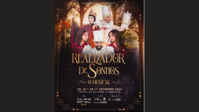 Nos dias 06, 07 e 08 de setembro, Blumenau irá viver um clima de muita arte, celebração à cultura e também inclusão. É a apresentação do espetáculo O Realizador de Sonhos – O Musical, do produtor cultural Kauê Lopes, que em um show com mais de uma hora e meia de duração, promete emocionar o público presente numa viagem de puro encantamento.