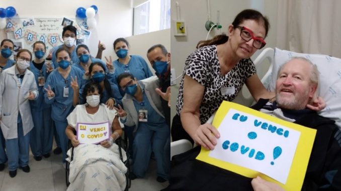 Dois pacientes foram homenageados ao receberem alta nesta sexta-feira, 14, no Hospital Santa Isabel. Ambos chegaram a ser internados na UTI, foram entubados, mas reagiram ao tratamento.