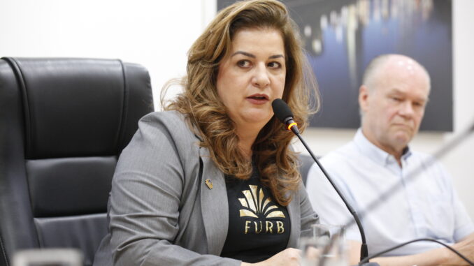 A reitora da FURB, Márcia Sardá Espíndola, ocupará a Tribuna Livre da Câmara Municipal na sessão desta quinta-feira. Ela vai apresentar a situação econômica da Universidade Regional de Blumenau e o que vem sendo feito em busca de um equilíbrio financeiro desde que ela assumiu, em 2019.