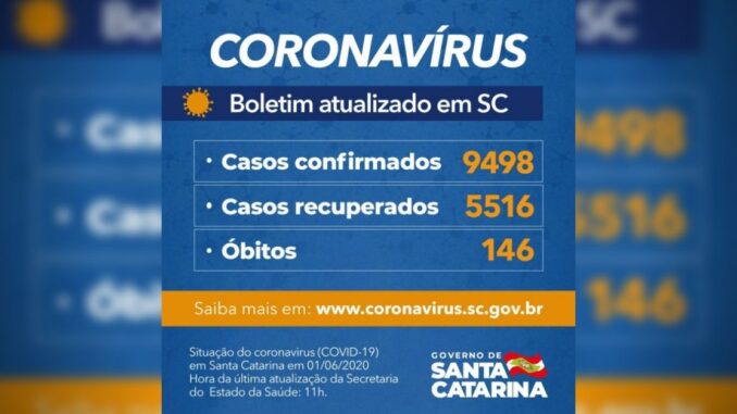 Santa Catarina já registrou 9.498 casos confirmados de Covid-19, dos quais 5.516 já estão recuperados e 3.836 permanecem em acompanhamento. O balanço foi divulgado nesta segunda-feira, 1º de junho. O novo coronavírus já causou 146 mortes no estado desde o início da pandemia. Esses números colocam a taxa de letalidade em 1,54%.