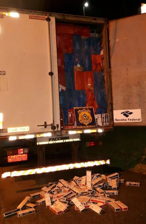 Uma ação conjunta da PRF, Receita Federal e PM apreendeu 200 mil maços de cigarros contrabandeados na madrugada desta terça-feira na BR 470.