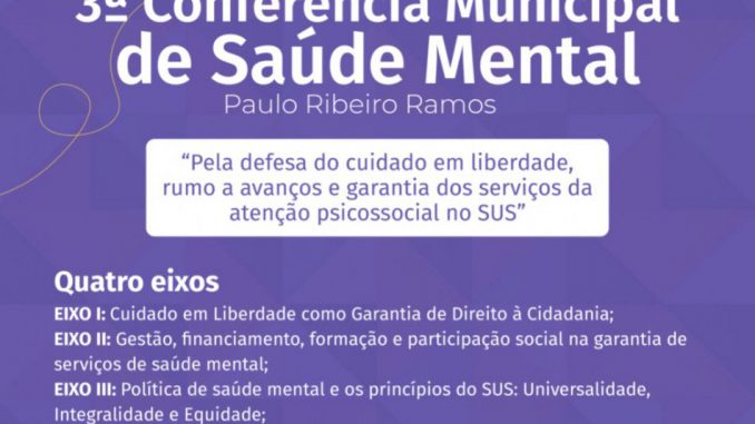 Os interessados já podem fazer inscrição, sem custo, por meio do link bit.ly/InscConfSaude. Um link de acesso será enviado aos participantes. Durante o encontro, serão discutidas ações de construção e atualização das políticas públicas de Saúde Mental, conforme a legislação do Sistema Único de Saúde (SUS). O tema principal do evento será “A Política de Saúde Mental como Direito: Pela defesa do cuidado em liberdade, rumo a avanço e garantia dos serviços da atenção psicossocial no SUS”.