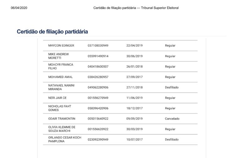 No sistema do TRE, onde mostra que ele filiou-se setembro passado, está como CANCELADO.