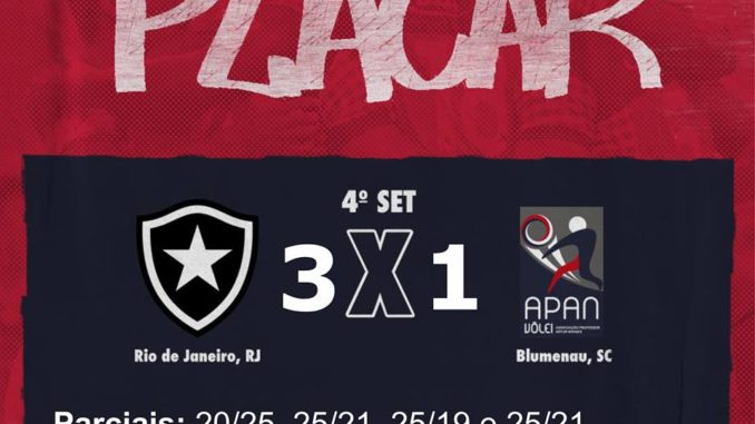 Depois de cinco vitórias em cinco jogos, apenas um set perdido, a APAN Blumenau mediu forças com o Botafogo, que também estava invicto na Superliga B. O jogo foi no Rio de Janeiro e os cariocas levaram a melhor.