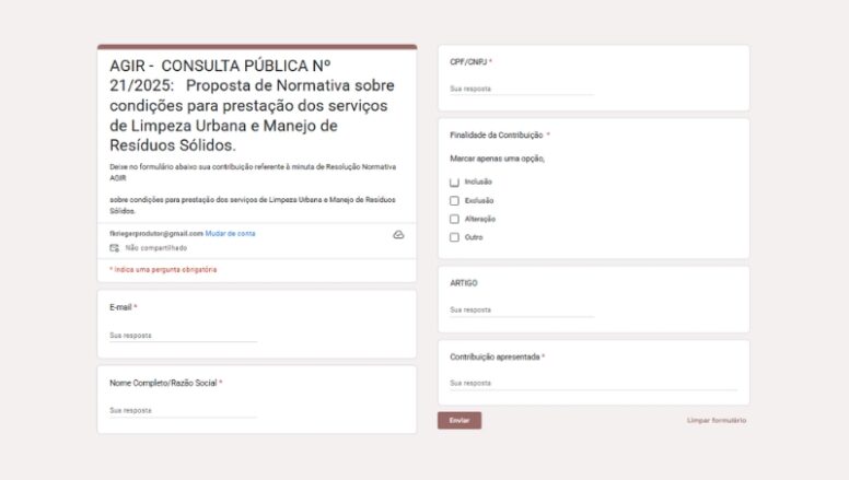 Ainda de acordo com a AGIR, “as consultas seguem as diretrizes da Agência Nacional de Águas e Saneamento Básico (ANA) e estão em conformidade com os princípios da Lei nº 13.848/2019, que dispõe sobre a atuação das agências reguladoras. A abertura do processo consultivo também observa os requisitos da Resolução ANA nº 134/2022, que trata da adoção das Normas de Referência (NRs) pelas Entidades Reguladoras Infranacionais (ERIs), como é o caso da AGIR.”