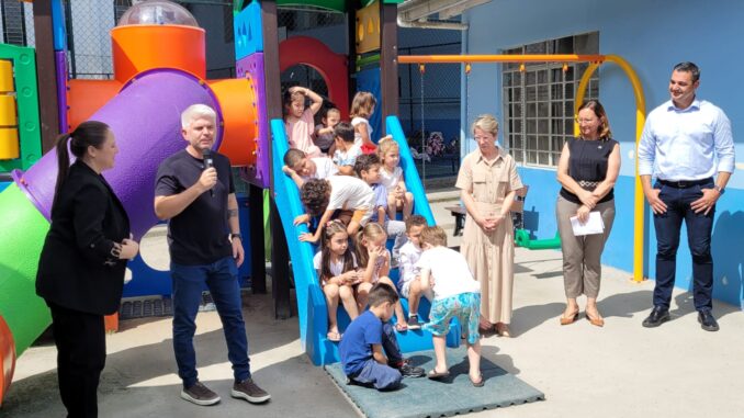Entre as ações que seguem em andamento estão a distribuição de uniformes e materiais escolares para as crianças da rede municipal, além da instalação de parques nas escolas e CEIs, ampliando os espaços de convivência e lazer.