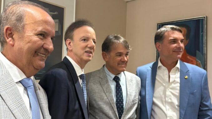 Ao lado de Flávio Bolsonaro e Jorginho Mello, Ismael participa do seu primeiro ato político no PL