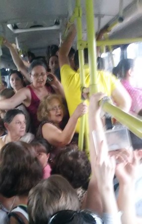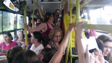 A cada ponto, a situação piorava. As pessoas começaram a ficar irritadas e reclamar. Pudera, naquele calor, espremidos, pensando que no outro dia poderia nem haver ônibus. Até chegarmos ao terminal Fortaleza. Então, as pessoas fizeram um coro de “eeee” chegamos.