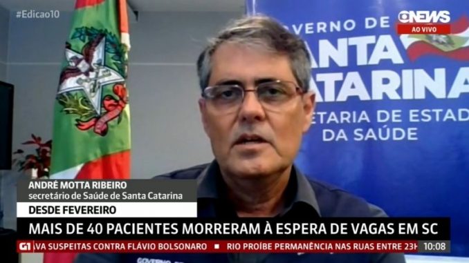 O secretário de Saúde de SC participou de uma entrevista nesta quinta-feira na GloboNews, onde preferiu atenuar a situação vivida pelo Estado, com os graves problemas enfrentados pelo colapso no sistema hospitalar, com a transferência de pacientes para o Espírito Santo e o relato de outros morrendo no aguardo de leitos.