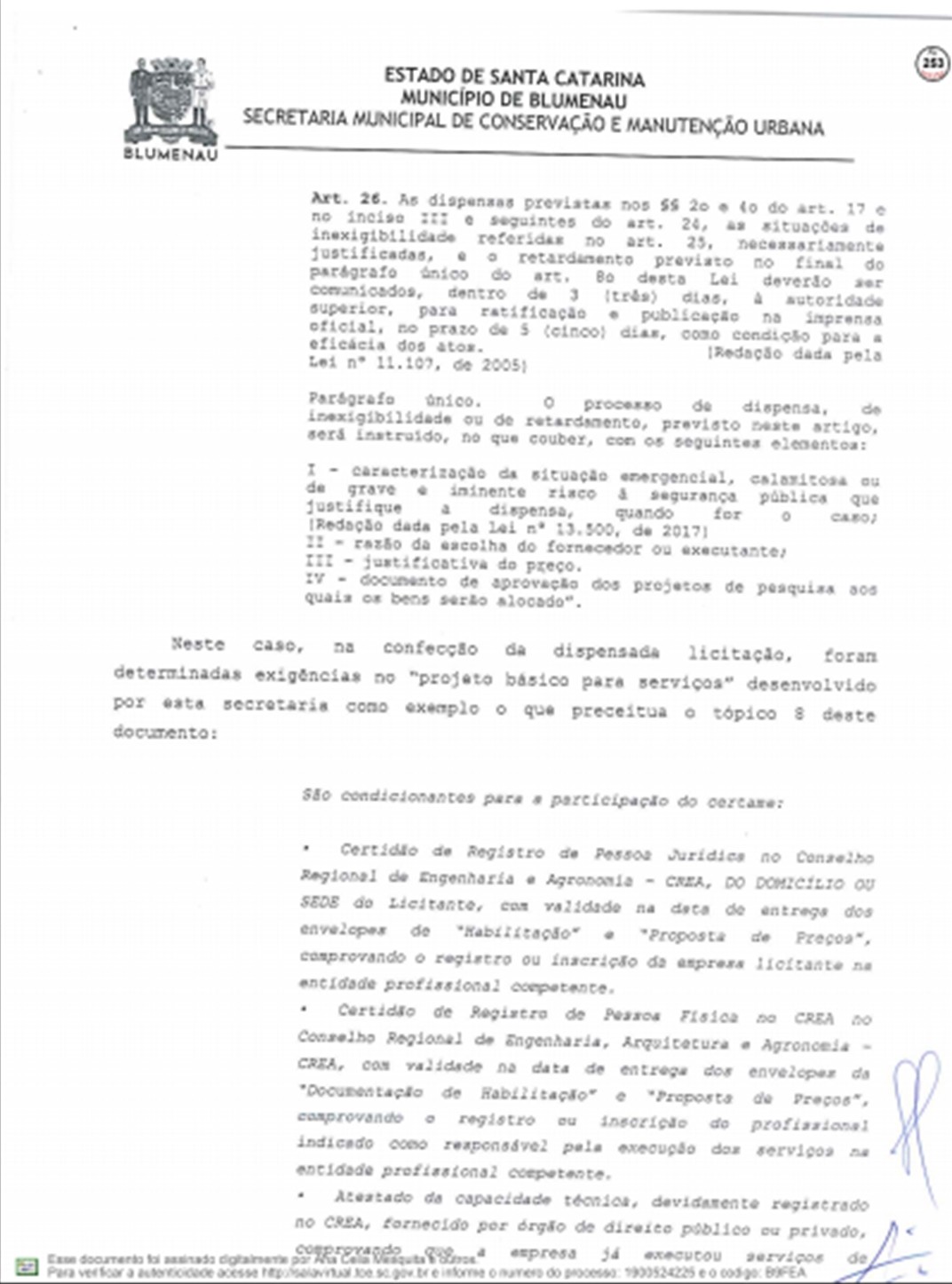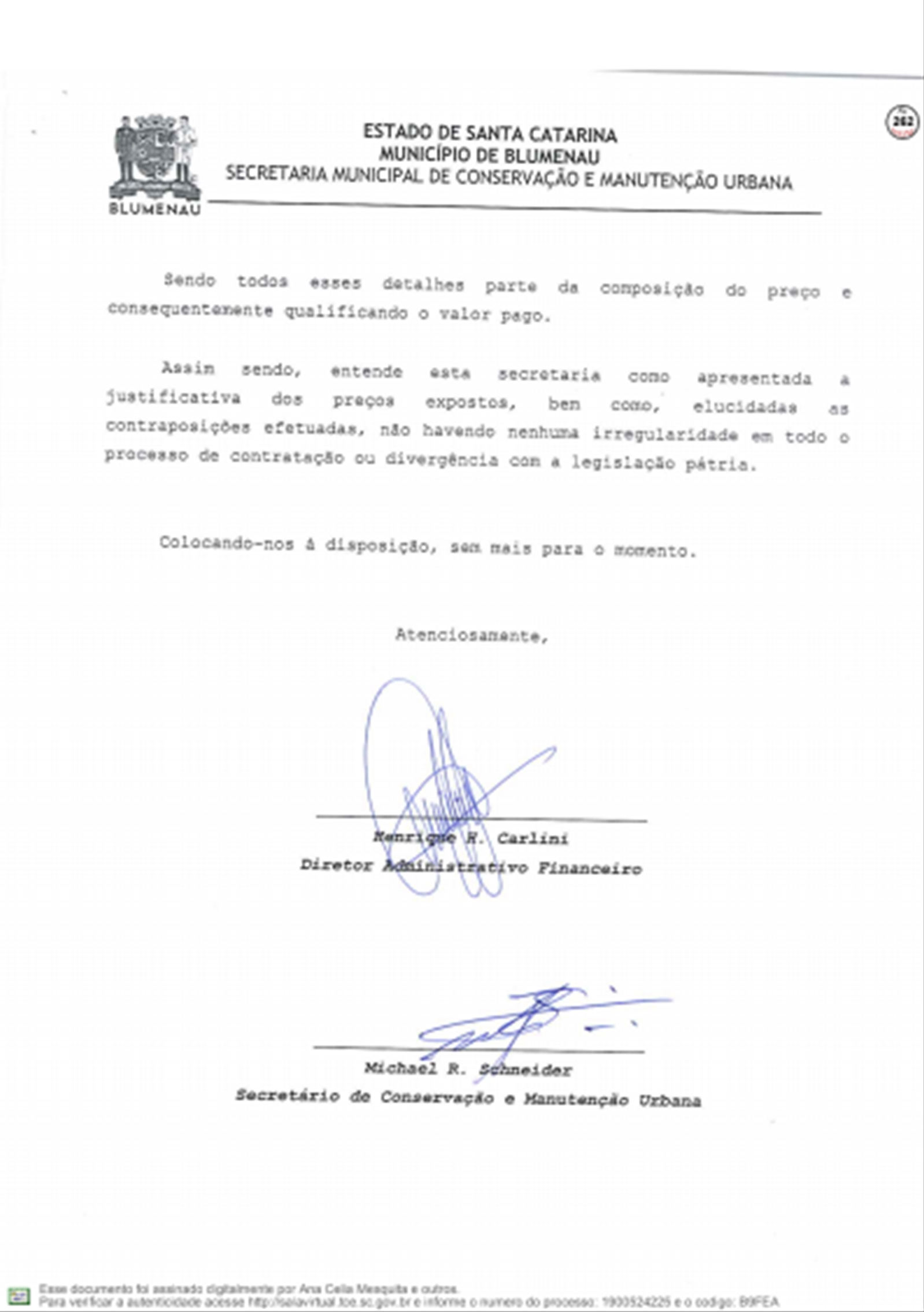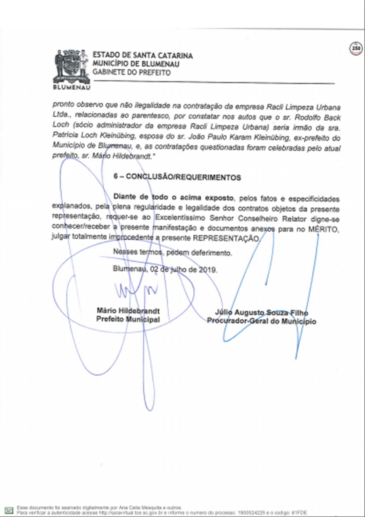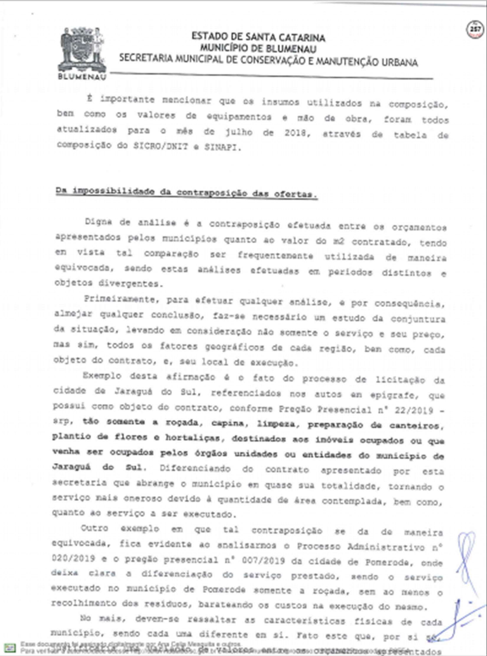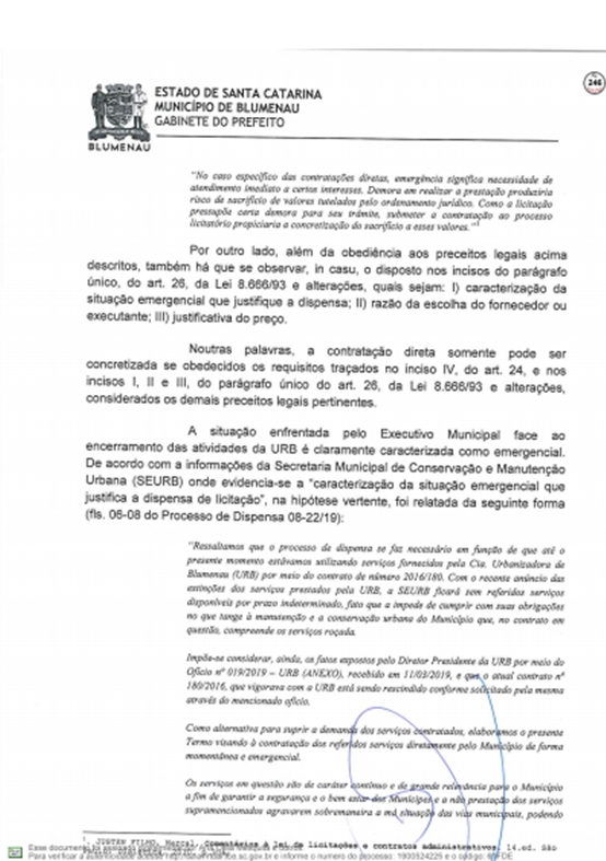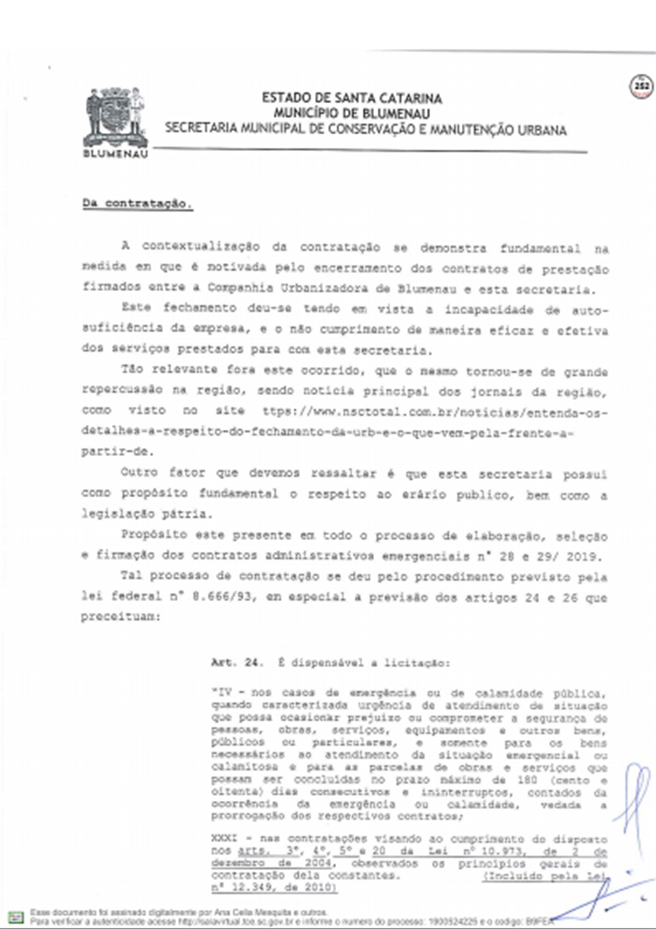 A Prefeitura respondeu ao Tribunal de Contas do Estado sobre as denúncias feitas por Vanderlei Valentini, sobre os contratos emergenciais firmados com a Racli para roçada e outros serviços do tipo, depois da extinção da Companhia Urbanizadora de Blumenau.