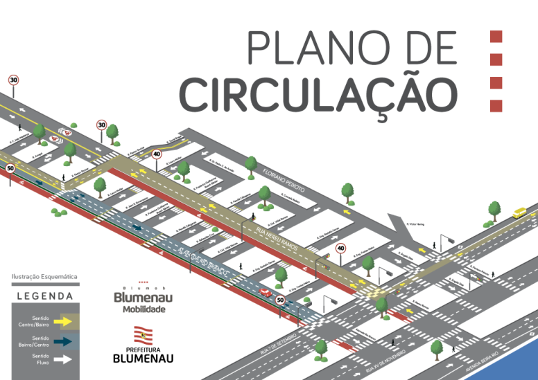 Agora, o trânsito na Alameda é sentido centro, enquanto que o da rua Nereu Ramos é sentido bairro.