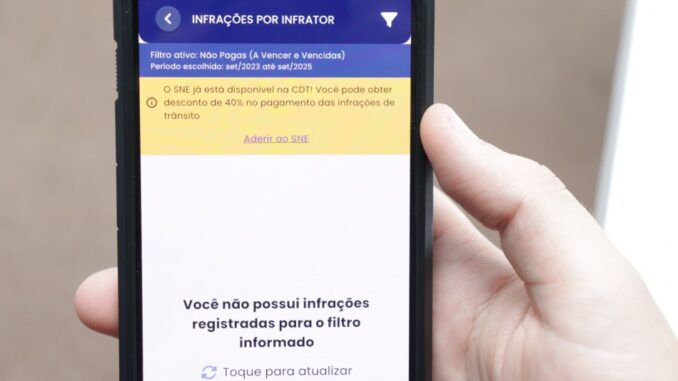 A adesão ao sistema é simples e pode ser feita diretamente no aplicativo da Carteira Digital de Trânsito: basta cadastrar o veículo e aceitar os termos do serviço. O cadastro é permitido para pessoas físicas e jurídicas proprietárias de veículos. Quem não possui Carteira Nacional de Habilitação (CNH) também pode aderir ao SNE utilizando o número de Registro Nacional de Veículo Automotores (Renavam).