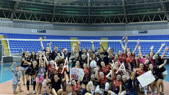 Com uma vitória na tarde deste sábado no Galegão, contra o Taubaté, o Bluvolei garantiu vaga para a final da Superliga B e vaga na Superliga feminina na próxima temporada do vôlei feminino. O placar foi 3×1, com parciais de com parciais de 21/25, 29/27, 25/21 e 25/17.  Esta foi a terceira partida entre as duas equipes para garantir a vaga. Blumenau perdeu a primeira e ganhou as outras duas.