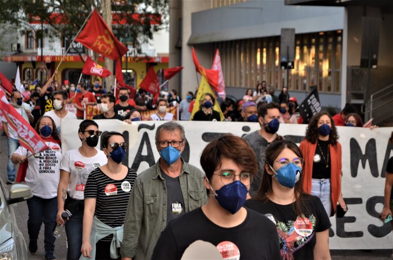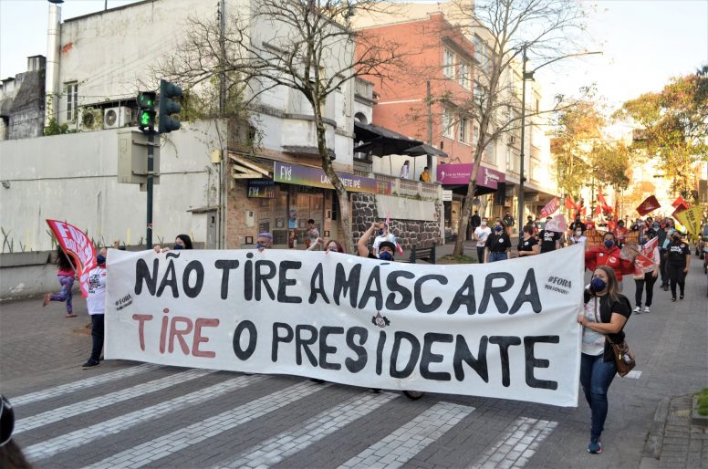 Com muitos jovens, que empunham cartazes defendendo o impeachment do presidente, cobravam ainda a retirada de direitos e a defesa por mais vacinas. Também foi possível perceber um ou outro manifestante com camisa do ex-presidente Lula (PT).