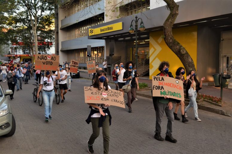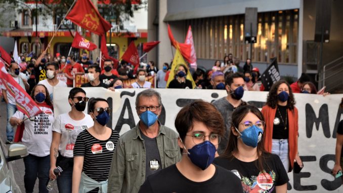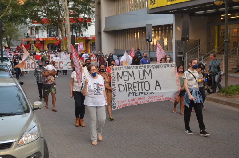 O Movimento Blumenau Pela Vida, que reúne representantes de sindicatos trabalhistas, movimentos sociais e partidos políticos de esquerda, promoveu nova manifestação contra o presidente Bolsonaro (sem partido) neste sábado, seguindo mais um dia de mobilização nacional contra a política do Governo Federal.