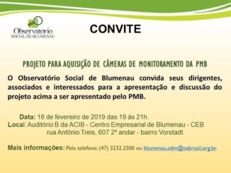 Nesta segunda-feira, 18, a Prefeitura de Blumenau vai apresentar o projeto para aquisição de câmeras de monitoramento, em um encontro aberto à comunidade, solicitado pelo Observatório Social de Blumenau. Será no Auditório B, no segundo […]