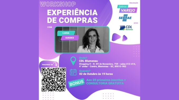 CDL Blumenau recebe, no dia 2 de outubro, às 19h, o workshop “Experiência de Compras”, conduzido por Liana Guedes, especialista em varejo e criadora do método Arquitetura de Performance. Com vagas limitadas, o evento é gratuito e aberto ao público. Para participar, é necessário realizar a inscrição online.