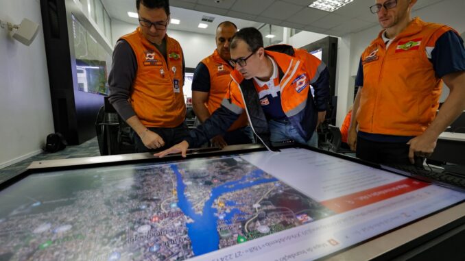 “Sábado à noite, acompanhando a previsão hidrometeorológica e a projeção em relação aos níveis dos rios, especialmente lá no Alto Vale, foi identificado que em Rio do Sul nós teríamos o nível do rio acima de 8 metros e meio, possivelmente próximo a 9 metros e com isso uma parte significativa da população atingida, eles tinham aberto já cinco abrigos e nós precisávamos aumentar o nível de mobilização e hoje ter o Centro Integrado de Operações funcionando para poder dar toda a assistência aos municípios,’’ afirmou o coronel Laureano, diretor de Gestão de Desastre da Defesa Civil.