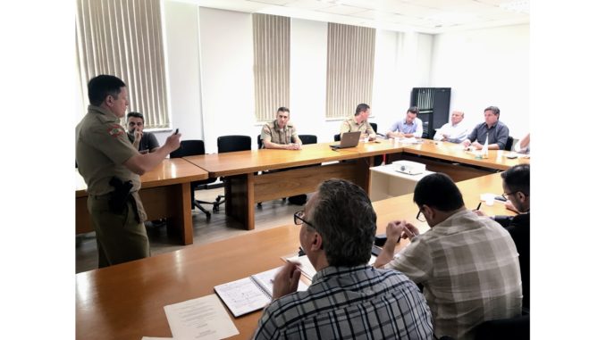 O comandante Moacir Gomes Ribeiro, da 7a Região da PMSC, esteve presente na reunião das entidades que formam o G6, ocorrida nesta segunda-feira, para falar sobre a proposta de criação de uma taxa de contribuição à PMSC regional Blumenau, por meio da alteração das taxas de alvarás cobradas das empresas.