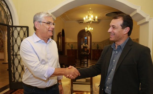 O governador Eduardo Pinho Moreira (MDB) recebeu nesta segunda-feira, 29, na Casa D’ Agronômica, o governador eleito Carlos Moisés da Silva para tratar das primeiras ações após a eleição.