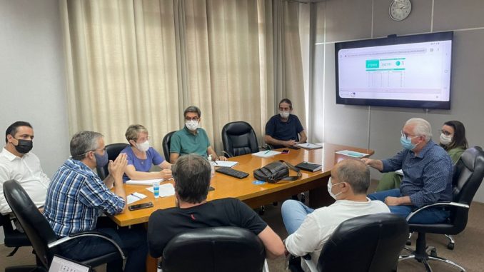 Na tarde desta quarta-feira, 5, o prefeito Mário Hildebrandt (Podemos) e a vice-prefeita Maria Regina Soar (PSDB), que antecipou o final das férias, se reuniram com representantes da Secretaria de Promoção da Saúde para definir ações de reforço no enfrentamento à pandemia de Covid-19. O prefeito também anunciou que não entrará em férias a partir do dia 17, como estava previsto.