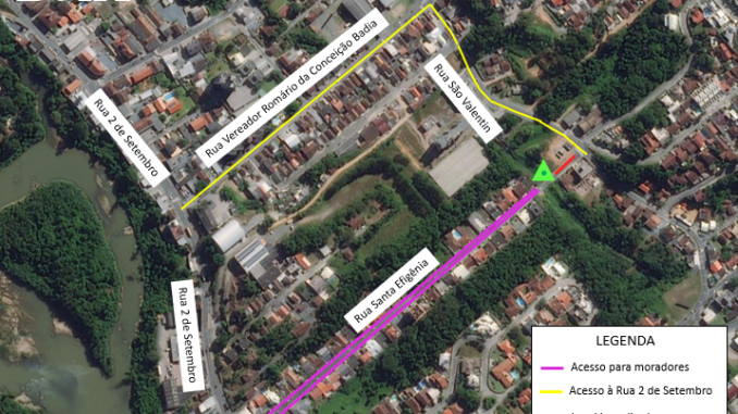 Em razão da chuva nos últimos dias, o serviço de pavimentação em frente à Estação Elevatória de Esgoto (EEE) na Rua Santa Efigênia, Bairro Itoupava Norte, foi adiado para esta sexta-feira (8/4). Durante a realização das atividades, entre 8h e 17h, o trânsito local ficará interditado para a segurança de todos, bem como para a execução da obra com agilidade. No período, os moradores terão acesso à rua pela Dois de Setembro. Já quem precisar acessar a Rua Dois de Setembro, poderá utilizar a Rua Vereador Romário Conceição Badia como rota alternativa. Vale lembrar que o cronograma depende das condições meteorológicas e que, se necessário, pode ser adiado novamente para segunda-feira (11/4), com execução no mesmo horário. Em ambos os serviços é importante que pedestres, ciclistas e motoristas fiquem atentos à sinalização e orientação dos colaboradores no local.
