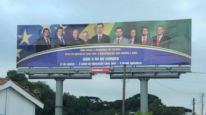 “Bem-vindo a República de Curitiba. Terra da Operação Lava Jato, a investigação que mudou o país. Aqui a Lei se cumpre”, afirmava o outdoor por ocasião dos cinco anos da investigação.