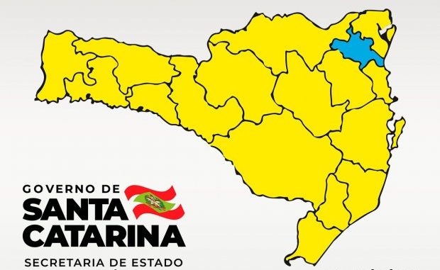A Matriz de Risco Potencial Regionalizado divulgada neste sábado, 5, aponta 16 regiões classificadas como risco potencial alto (cor amarelo) e uma no nível de risco moderado (cor azul). Em um comparativo com o relatório divulgado na semana anterior, houve melhora nos indicadores da região do Vale do Itapocu, que na semana estava no nível de Risco Alto (amarelo), e passou a ser classificado no nível Moderado (azul).