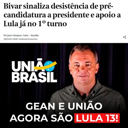 Mas já recebi material do time do governador com mentiras contra adversários, como o que insinuava que o União Brasil, de Gean Loureiro, estaria com o Lula (PT), após o presidente nacional da sigla, Luciano Bivar desistir da candidatura presidencial. Bivar vai ser candidato a deputado federal e o União não declarou apoio ao Lula.
