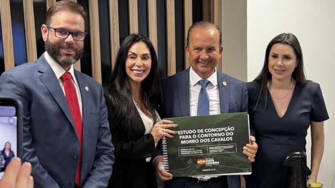 O governador Jorginho Mello (PL) se reuniu nesta quarta-feira, 3, com o Fórum Parlamentar Catarinense para apresentar o Estudo de Concepção do Contorno do Morro dos Cavalos, realizado pelo Governo do Estado. O encontro foi realizado na Secretaria de Articulação Nacional, em Brasília.