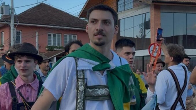 Jair Renan, que também é pré-candidato a deputado federal, esteve em Pomerode no último final de semana, para o encerramento da Festa Pomerana. E participou, com um copo de chope na mão, do último desfile da festa, no final da tarde de sábado.
