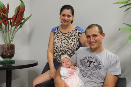 Na foto, está Fabiano Burini, a esposa Karen e a pequena Sophia. Ele trabalha na Brandili Têxtil, empresa de Blumenau, com mais de 500 trabalhadores, todos com direito a licença paternidade de 20 dias.