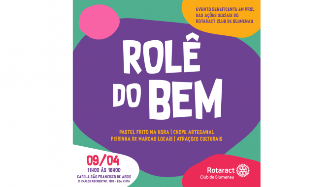O evento Rolê do Bem tem como intuito arrecadar fundos para as ações sociais do Rotaract Club de Blumenau. O evento acontecerá no dia 09 de abril de 2022, sábado, na Capela São Francisco de Assis, rua Carlos Rischbieter, número 1808, no bairro Boa Vista, das 11 horas às 18 horas. Todo seu lucro será revertido para as atividades e os projetos sociais da organização.