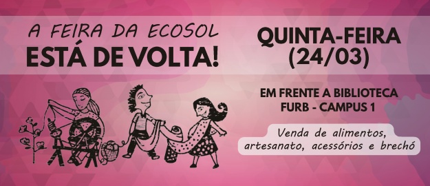 Após dois anos sem atividades, a tradicional Feira da Economia Solidária – Feira da Ecosol FURB – retorna nesta quinta-feira, dia 24 de março, em frente à Biblioteca Central, das 9h às 20h30. A ideia é que a partir do mês de abril a Feira passe a ser mensal e em dois dias consecutivos, no formato que acontecia antes da pandemia.