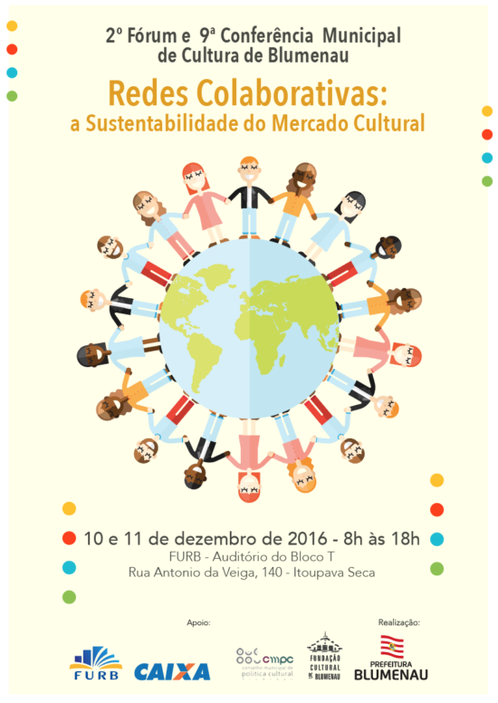 Sábado e domingo, dias 10 e 11, acontece na cidade o 2º Fórum e a 9ª Conferência Municipal de Cultura de Blumenau, tendo como tema central as redes colaborativas e a sustentabilidade do mercado cultural.