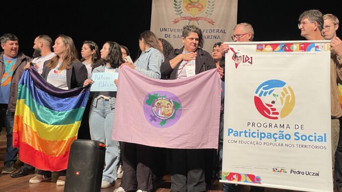 O Fórum Estadual de Participação Social — Um novo sujeito coletivo, encerrou o ciclo formativo do Programa de Participação Social com Educação Popular nos Territórios de Santa Catarina. O encontro contou com a presença de cerca de 700 pessoas, entre agentes populares, lideranças comunitárias, público externo e autoridades políticas, ampliando a atuação do Instituto Araxá no estado.