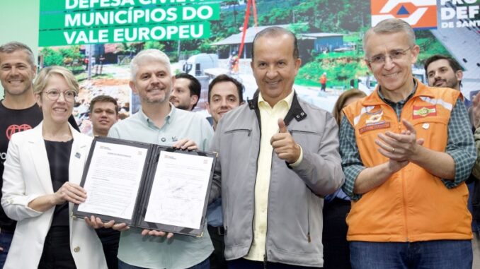O ato, realizado no auditório da Associação dos Municípios do Vale Europeu (Amve), contou com a presença do secretário de Estado da Proteção e Defesa Civil, Mário Hildebrandt, prefeitos, lideranças regionais e equipes técnicas.