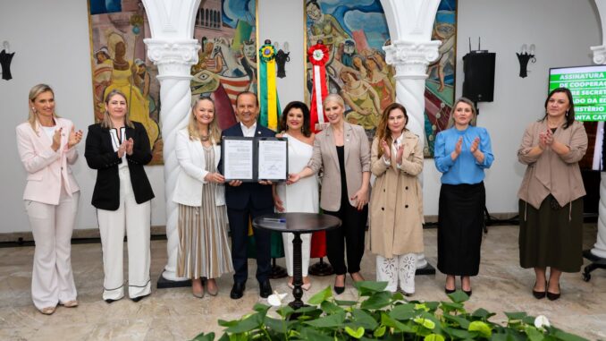 O Governo de Santa Catarina, por meio da Secretaria de Estado da Educação (SED), assinou nesta segunda-feira, 13, o Termo de Cooperação Técnica com o Ministério Público de Santa Catarina (MPSC) para implementar o programa “Educando Cidadãos” nas 868 escolas de ensino fundamental da rede estadual. A formalização foi firmada pelo governador Jorginho Mello, a vice-governadora, Marilisa Boehm, a secretária de Estado da Educação, Luciane Ceretta e a procuradora-geral de Justiça, Vanessa Cavallazzi. A iniciativa começará a ser aplicada já neste ano letivo.