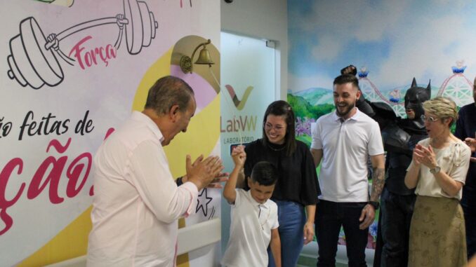 A promessa se concretizou nesta sexta-feira (13). O Governador Jorginho Mello participou da cerimônia do sino ao lado de Daniel e de sua família, celebrando a coragem e a conquista do menino.