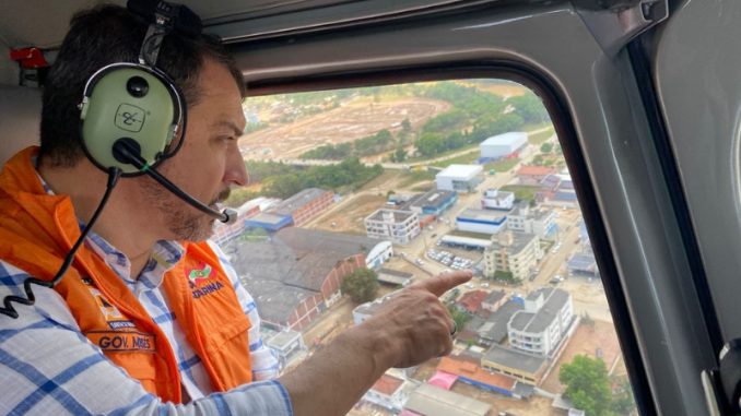 O governador Carlos Moisés sobrevoou, entre o fim da manhã e o começo da tarde desta sexta-feira, 2, áreas atingidas pelas fortes chuvas dos últimos dias em Santa Catarina. Ao lado do chefe da Defesa Civil estadual, David Busarello, Carlos Moisés viu os efeitos das enchentes nas cidades de Palhoça, Santo Amaro da Imperatriz, Águas Mornas, Angelina, Antônio Carlos, Biguaçu, Tijucas, Canelinha e São João Batista.