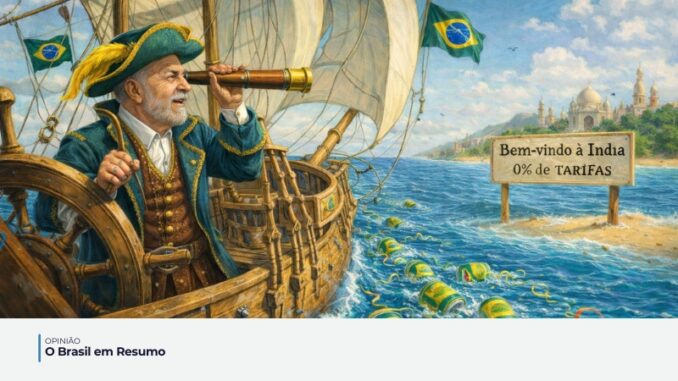 Problema é que “D.” Trump não sai do X – ex-Twitter – e nem da casa do… ficou sabendo e mandou colocar uma tarifa de 10% para todo mundo, com base em um dispositivo da lei comercial de 74, que ainda não é o ano no passado que ele sonha reviver.