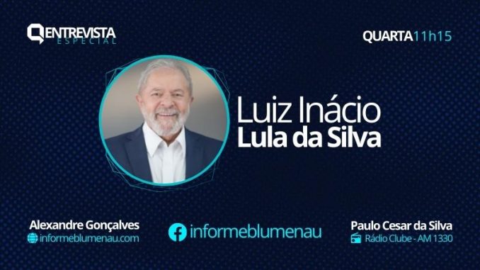As tratativas estavam em andamento há cerca de dois meses, a partir de uma iniciativa da Rádio Clube, que tem o colega e amigo Jorge Theiss como responsável pelo departamento de Jornalismo, numa parceria com o Informe Blumenau. Outras datas chegaram a ser agendadas, mas foi apenas nesta terça-feira que finalmente veio a confirmação. Nesta quarta-feira, dia 15, durante 45 minutos, vamos entrevistar o ex-presidente Luiz Inácio Lula da Silva, provável candidato do PT à Presidência da República.