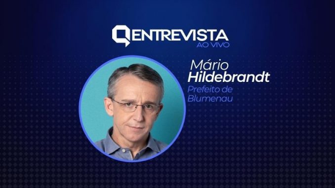 O jornalista Alexandre Gonçalves conversa com o prefeito de Blumenau, Mário Hildebrandt (Podemos).