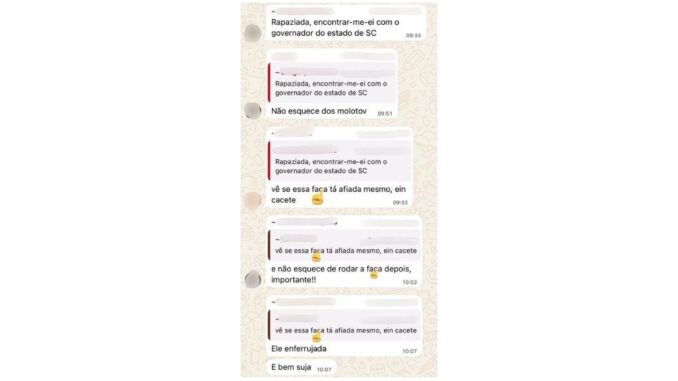 “Não esquece dos molotov”, “vê se essa faca tá afiada mesmo”, “e não esquece de rodar depois, importante!!” e “enferrujada. E bem suja.”