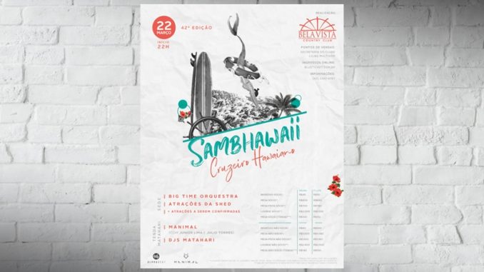 Já começou a venda dos ingressos para a 42ª edição de uma das maiores festas da região, o Sambhawaii. Este ano o clube Bela Vista apostou no tema “Cruzeiro Hawaiano”, que promete surpreender o público e proporcionar uma encantadora viagem ao Havaí. A festa acontece dia 22 de março, e os ingressos já podem ser adquiridos na secretaria do clube, Lojas Multisom e Bluticket Online.