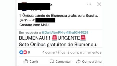 Em Santa Catarina alguns grupos estimulam estas manifestações golpistas, estima-se que pelo menos sete ônibus partiram para engrossar a manifestação em Brasília. Em um dos grupos de whats dos supostos organizadores, falava-se que os ônibus eram gratuitos.