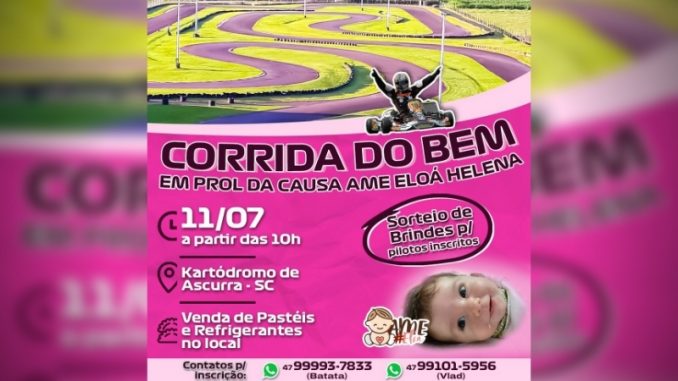 Pilotos amadores de Kart do Médio Vale do Itajaí lançaram um desafio a todos os amantes da velocidade: um torneio de kart, disputado em um único dia, para arrecadar recursos para a bebê Eloá Helena, que sofre de atrofia muscular espinhal (AME), uma doença fatal se não curada até os dois anos de idade.